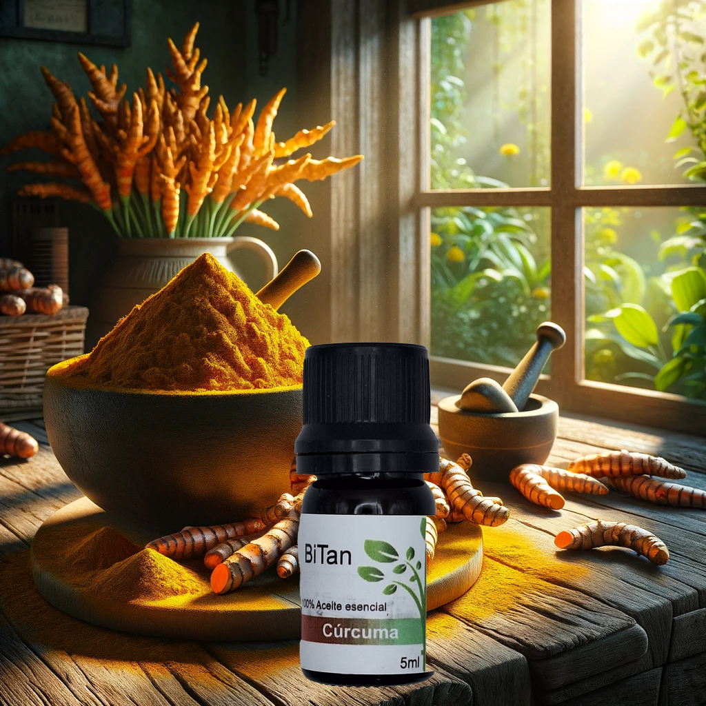 El aceite esencial de cúrcuma se utiliza comúnmente en la aromaterapia y en la medicina tradicional para una variedad de propósitos. Algunos de los posibles beneficios del aceite esencial de cúrcuma incluyen:nnPropiedades antiinflamatorias: El aceite esencial de cúrcuma contiene curcumeno, el mismo compuesto que se encuentra en la cúrcuma en polvo, que tiene propiedades antiinflamatorias. Se cree que el aceite esencial de cúrcuma puede ayudar a reducir la inflamación en el cuerpo y aliviar el dolor asociado.nnPropiedades antioxidantes: El aceite esencial de cúrcuma también contiene antioxidantes que pueden ayudar a proteger contra el daño celular y reducir el riesgo de enfermedades crónicas.nnPropiedades antimicrobianas: Algunas investigaciones sugieren que el aceite esencial de cúrcuma puede tener propiedades antimicrobianas que pueden ayudar a combatir las infecciones.nnApoyo digestivo: El aceite esencial de cúrcuma puede ayudar a estimular la producción de bilis, lo que puede mejorar la digestión y ayudar a reducir los síntomas de la indigestión.nnSin embargo, es importante tener en cuenta que se necesitan más estudios para confirmar estos posibles beneficios del aceite esencial de cúrcuma y que no debe ser utilizado como sustituto de un tratamiento médico adecuado. Además, es importante diluir el aceite esencial de cúrcuma antes de su uso y evitar su uso durante el embarazo y la lactancia sin consultar a un médico.nnComo se usa?nEl aceite esencial de cúrcuma se puede utilizar de diversas maneras, aunque siempre se recomienda diluirlo adecuadamente antes de su uso en la piel. Algunas formas comunes de usar el aceite esencial de cúrcuma son:nnAromaterapia: Agregue unas gotas de aceite esencial de cúrcuma a un difusor o humidificador de aromaterapia para disfrutar de sus propiedades aromáticas y beneficios para la salud.nnMasaje: Mezcle unas gotas de aceite esencial de cúrcuma con un aceite portador, como el aceite de coco o el aceite de almendras, y úselo para masajear la piel. Esta mezcla puede ser especialmente útil para aliviar el dolor y la inflamación.nnBaño: Agregue unas gotas de aceite esencial de cúrcuma al agua del baño para disfrutar de sus propiedades relajantes y aromáticas.nnInhalación directa: Agregue unas gotas de aceite esencial de cúrcuma en un pañuelo o tejido y respire profundamente para disfrutar de sus propiedades aromáticas.nnEs importante tener en cuenta que el aceite esencial de cúrcuma es muy concentrado y debe ser utilizado con precaución. Además, se recomienda hacer una prueba de parche en la piel antes de su uso para asegurarse de que no haya una reacción alérgica o irritación de la piel. Siempre consulte con un médico antes de usar aceites esenciales, especialmente si tiene alguna condición de salud preexistente o está embarazada o amamantando._x000D_n_x000D_n